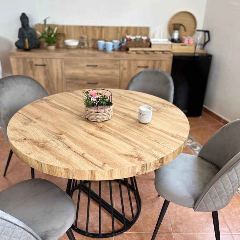 Los colores blancos y la madera de su decoración hacen que sea un espacio cálido, perfecto para encontrar la calma.
